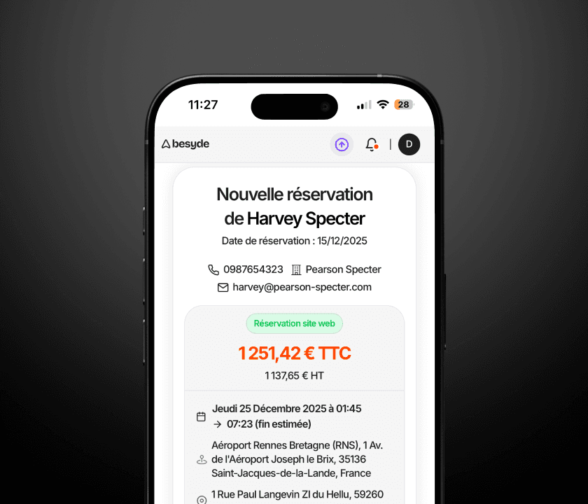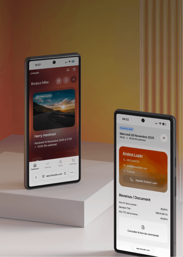 Besyde, l’application conçue pour attirer des clients en direct, les faire revenir et piloter simplement votre activité VTC.
