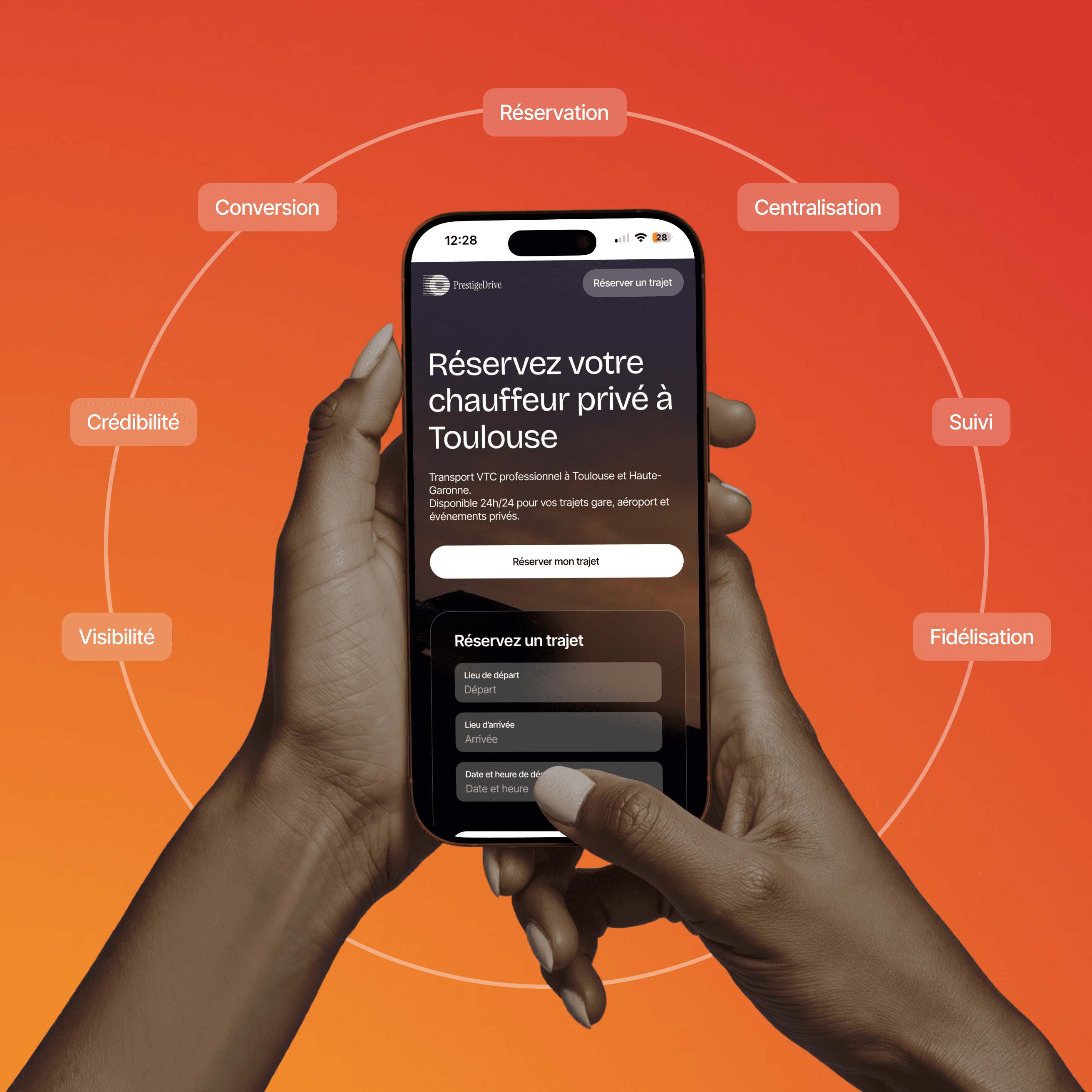 Vos clients réservent une course simplement, sans intermédiaire, via un lien de réservation dédié.