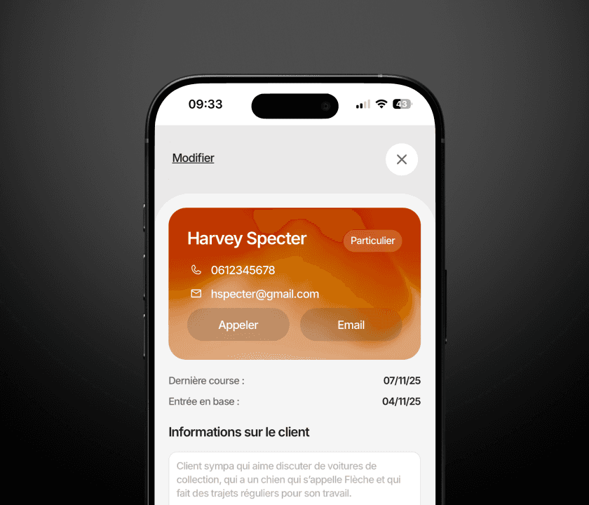 “Mes clients réservent simplement via mon lien, et la course arrive directement dans l’application. Je n’ai plus rien à ressaisir, tout est synchronisé automatiquement.”