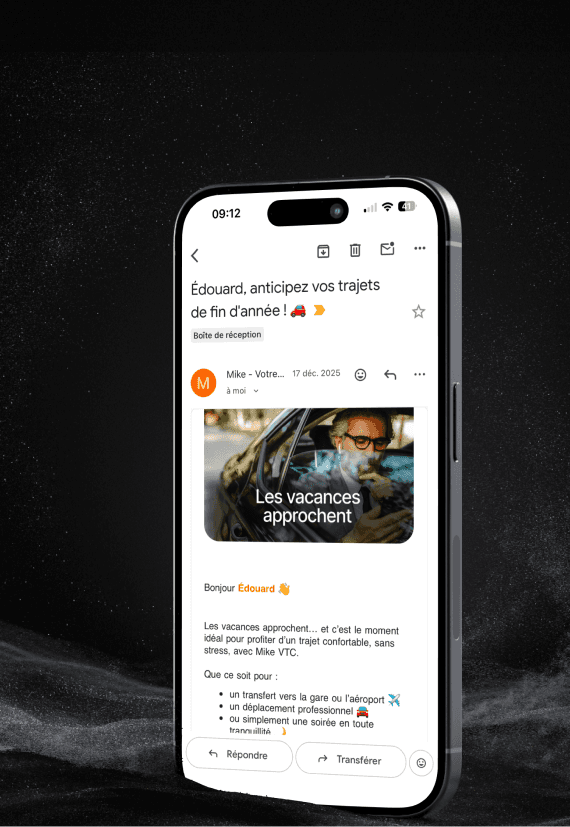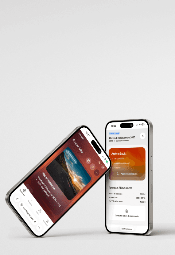 Toutes vos réservations, vos clients et votre activité VTC, centralisés au même endroit, depuis votre mobile ou votre ordinateur.