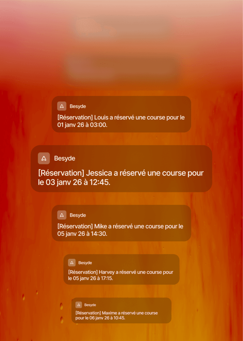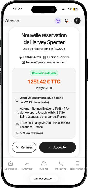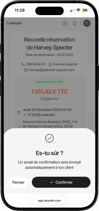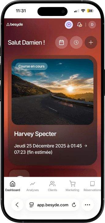 Le module de réservation est connecté à l'app Besyde pour vous permettre de gérer vos courses et vos clients simplement, depuis votre téléphone ou votre ordinateur.